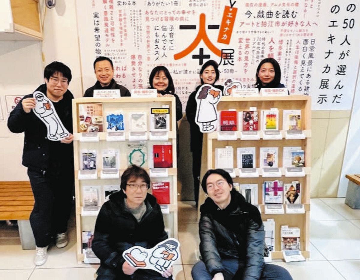 「エキナカ本展」を開催した「タマガワ図書部」のメンバー=山本雅美さん提供