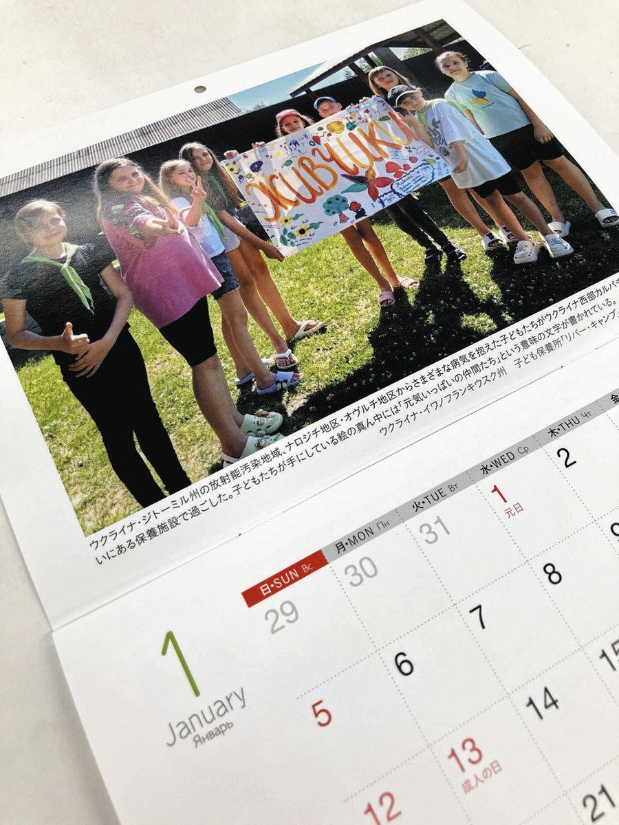 ウクライナ・チェルノブイリ原発事故の被災地で暮らす子どもらを支援している東京都練馬区の団体「チェルノブイリ子ども基金」が今年も、救援カレンダーを販売している。販売収益全額を、ロシアの侵攻で苦境が続く子どもらの保養や医薬品代などの支援に充てる。見開きA4判、1部千円。