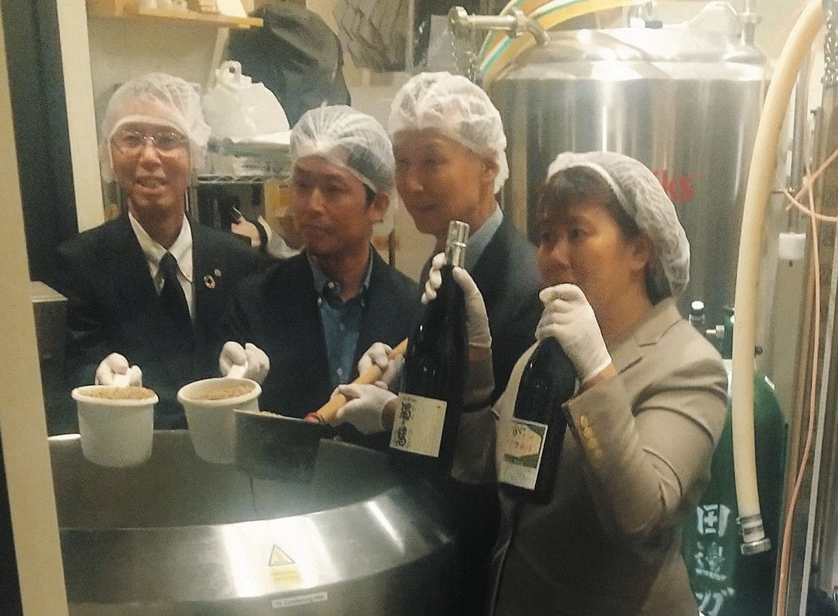 和歌山県産のしょうゆを使った地ビールの仕込み式が、東京都大田区の複合施設「羽田イノベーションシティ」内の醸造所であった=写真。しょうゆを提供する「角長」(同県湯浅町)の岡部隼人営業部長は式典で「これを機に湯浅がしょうゆ発祥の地であることを周知したい」と話した。