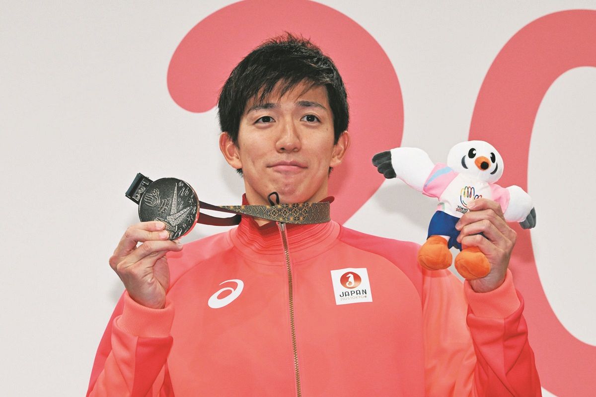表彰台で通算20個目のメダルを首から下げると、目が潤んだ。競泳男子400メートル自由形決勝は、31歳の茨が4分5秒11で銀メダルを獲得。「結果を出せてうれしい。自国開催で重圧があったけど、鳥肌が立つぐらいの応援で感動した」と感謝した。