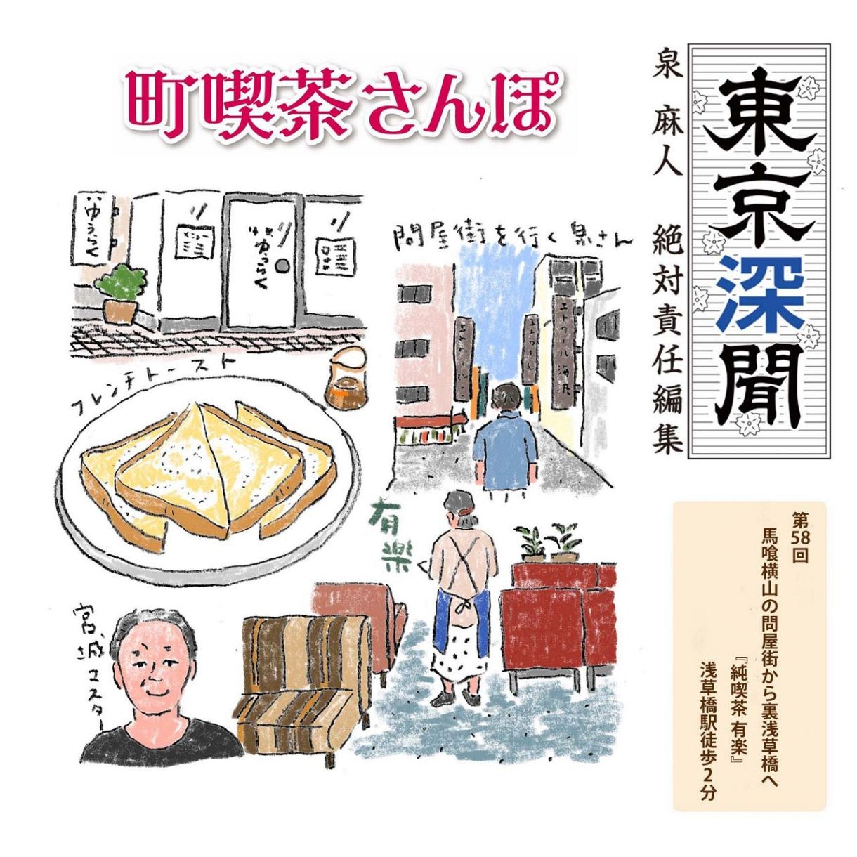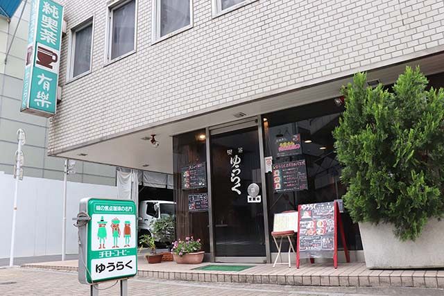 そんな旧町名では上平右衛門町の領域に入る、古いビルの1階に「有楽」という喫茶店がある。ビル脇の突きあたりに垣間見える、神田川岸の船宿「野田屋」(屋形船や釣り船)の看板が妙な趣を添えているが、この「有楽」って屋号は“もとは有楽町にあった”ということだろうか…。
