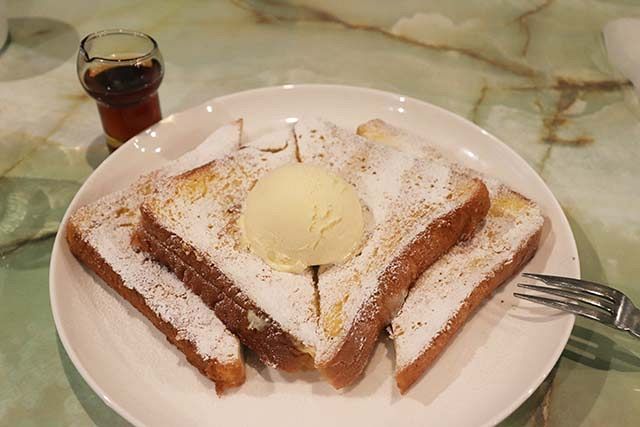 薄目の食パンを三角切りにして、仕上げにシュガーパウダーをまぶしたフレンチトースト──なんとなくなつかしいな…と思っていたら、