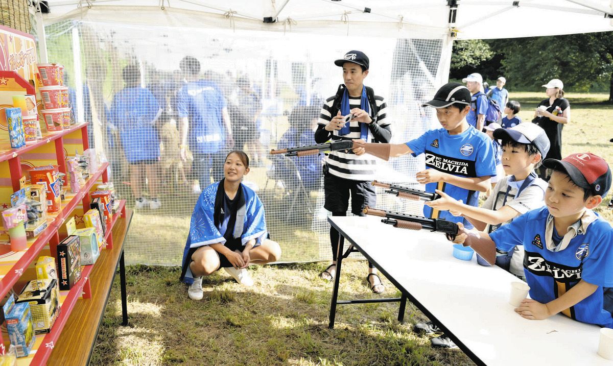 輪投げや射的などが楽しめる縁日エリアをスタジアム隣の広場に設置。選手の直筆サイン入りグッズなどを景品に用意した。午後2時半から同6時のキックオフまで開催し、試合の観戦チケットがなくても遊べる。