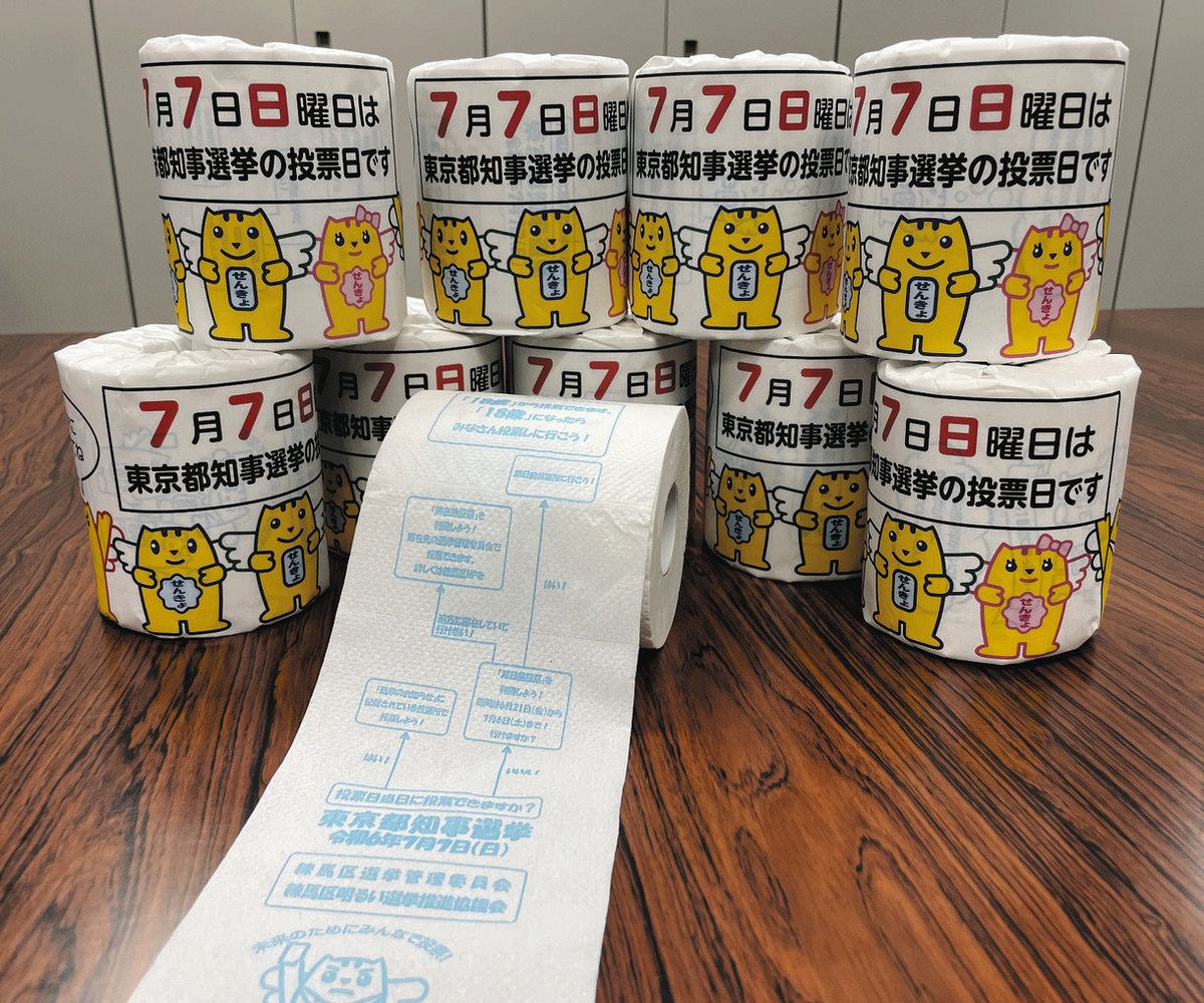 選挙のたびに、若者の投票率の低さが話題になる。東京都の練馬区選挙管理委員会がボランティアの大学生と協力して、トイレットペーパーの啓発グッズをつくった。生活のなかで必ず行く場所で、毎日ながめているうちに自然と都知事選の投票の仕組みが頭に入る。