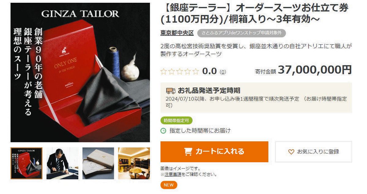 3700万円の寄付で1着1100万円のスーツが作れる。
