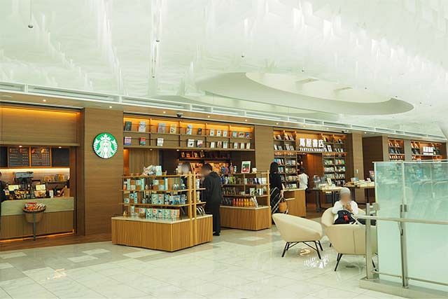 3Fの国際線出発ロビーから吹き抜け階段を上って4Fへ。書店で本を購入し、カフェで読書しながら搭乗時間を待つという過ごし方も素敵です。