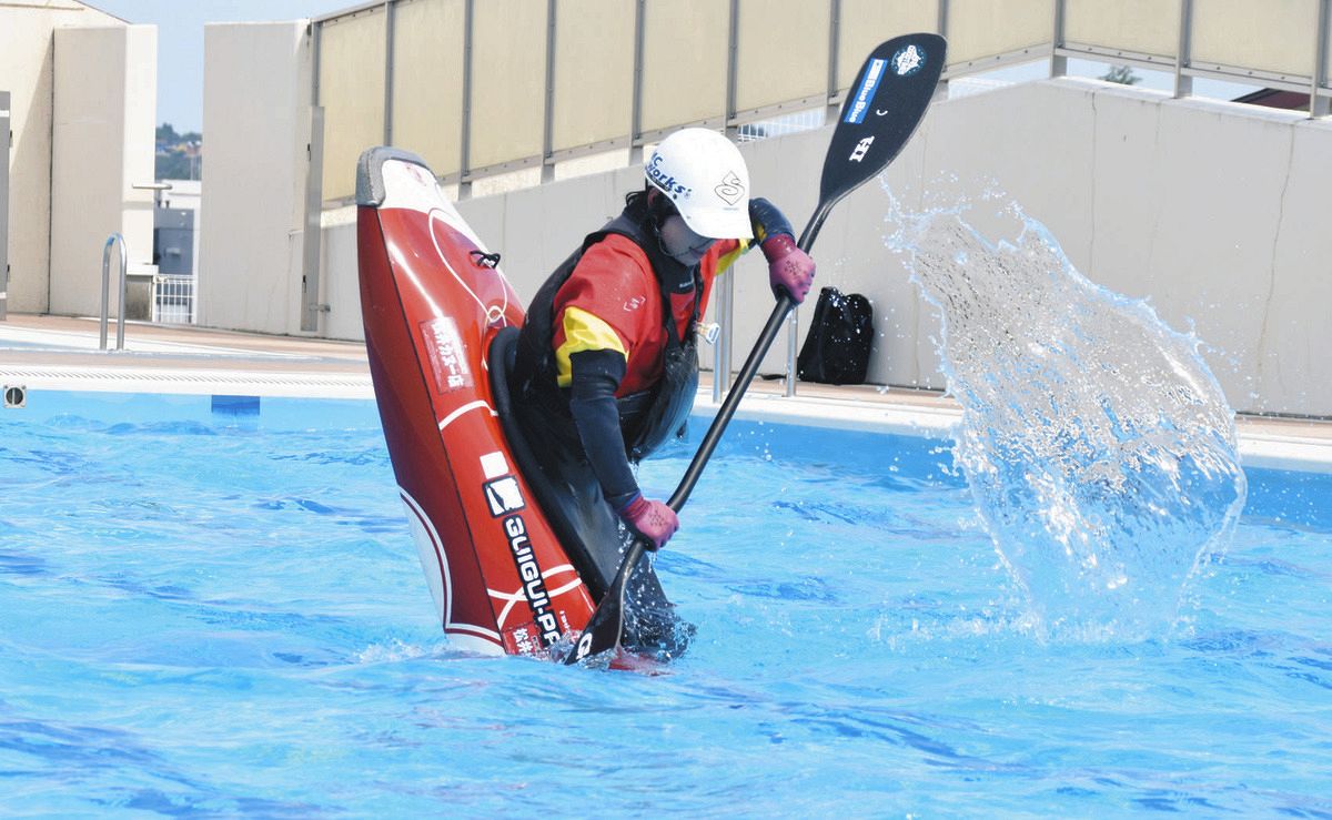 フリースタイルカヤック。耳慣れない名前の競技だが、実は八王子市に世界王者がいる。高久(たかく)瞳さん(42)は国内の第一人者で、世界選手権やW杯でも優勝している。国内外の河川を渡り歩く日々だが、地元での練習場所はなんと、市立小学校のプールだ。