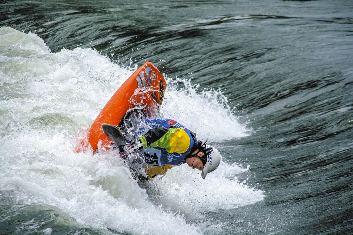 フリースタイルカヤック岩にぶつかる水流や川床の落差で生まれる「巻き返し波」の中で、カヤックを操って回転やひねり技を繰り出す競技。制限時間内に、技を成功させた点数を競う。五輪種目には含まれていない。