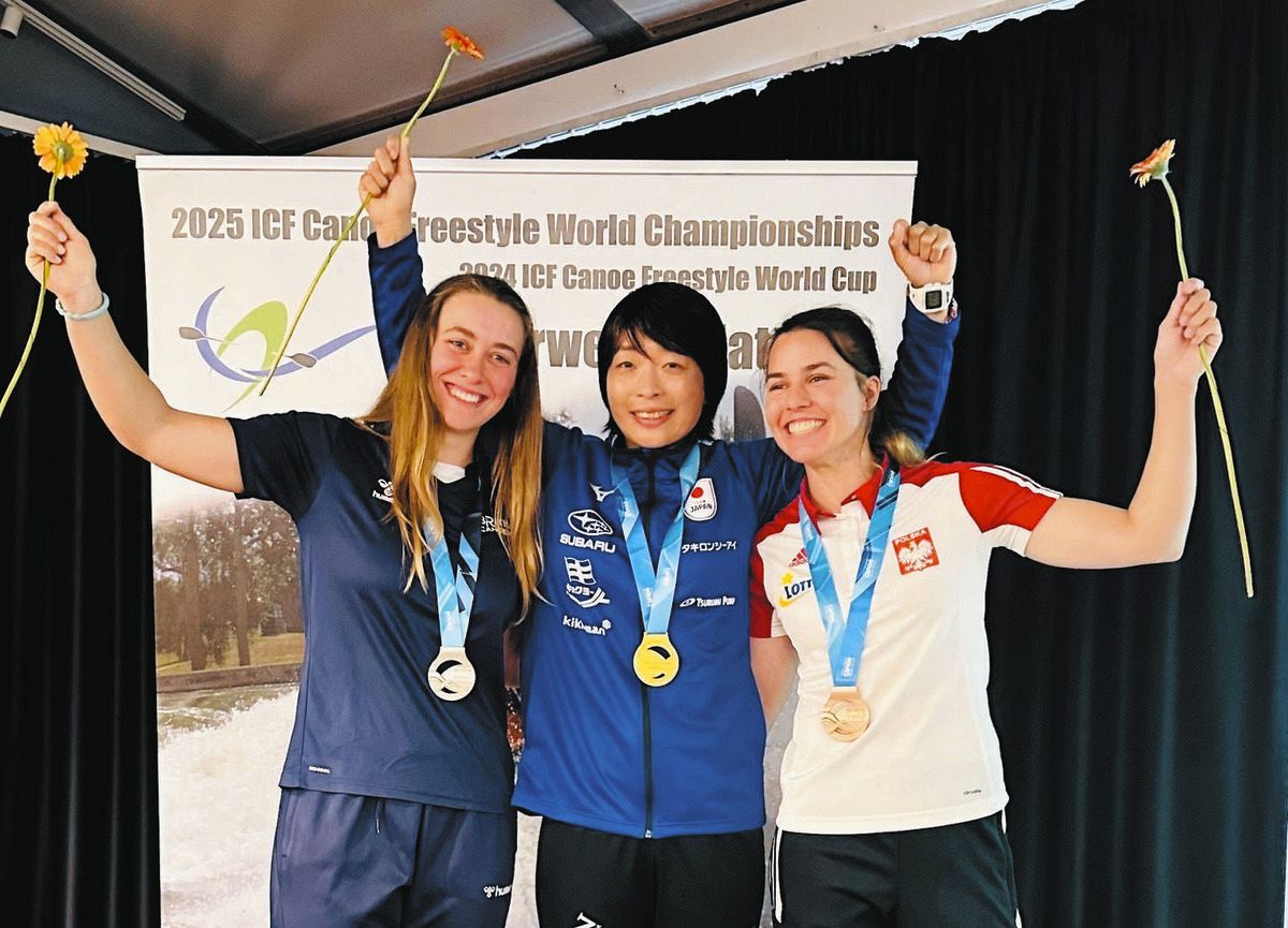地元にも支えられ、今年の戦績は好調だ。5月にドイツ・プラットリングであったW杯シリーズに出場。長年経験を積んできた、膝を曲げて艇に座るフリースタイルカヤックの「WK1」部門では第2戦で優勝。今年から始めた、膝を伸ばして座るフリースタイルカヌーの「WC1」部門でも3位に輝いた。「現地の水量は毎日目まぐるしく変化して、攻略が難しかった。常に全力でこいだ結果が出てうれしい」と喜ぶ。