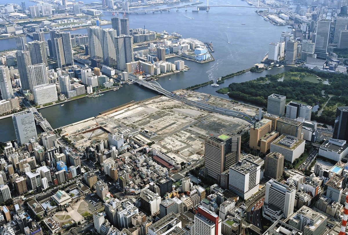築地市場跡地の再開発計画東京都が4月、三井不動産、読売新聞グループ本社など10社の企業グループを事業予定者に決定。19.4ヘクタールの跡地に野球やサッカー、コンサートなどに利用できる5万人収容の屋根付きスタジアムを整備するほか、食のエリア、数万人規模の学会・イベントに対応できる会議施設などを設ける。大半の施設は2032年度に完成し、全体の完了は2038年度の見込み。総事業費は9000億円。