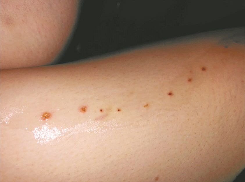 ハイフ施術から8日後の女性の左太ももの写真=女性の代理人弁護士提供