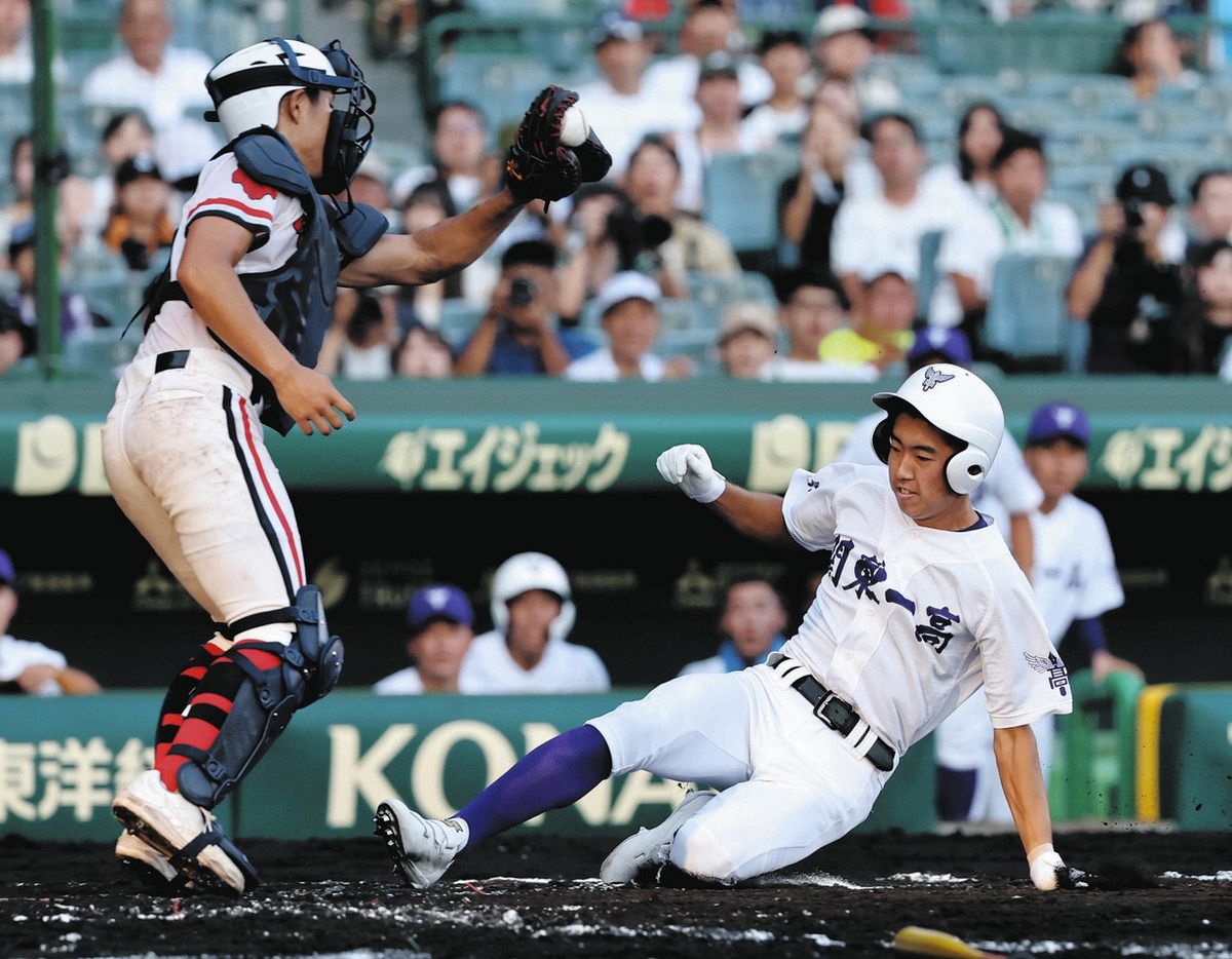 投げては左右両エースの継投で逃げ切った。先発した左腕の畠中鉄心投手(同)は高い制球力を見せ、要所でチェンジアップとスライダーを生かして相手打者を翻弄(ほんろう)。四回からは坂井遼(はる)投手(同)が、140キロ台中盤の迫力ある直球と、100キロ未満のスローカーブを織り交ぜ、相手打線を完璧に抑えた。