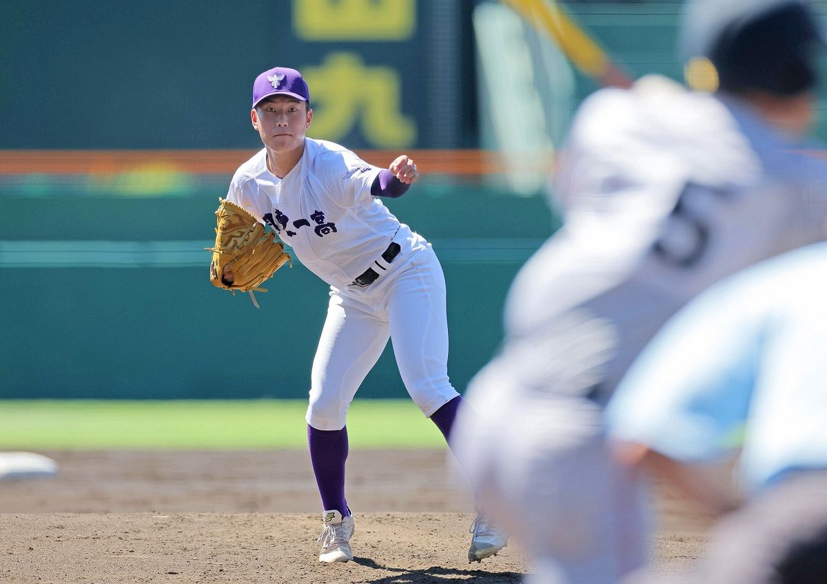 序盤から畠中鉄心投手(関東第一)と中崎琉生投手(京都国際)の両左腕の制球がさえ、投手戦になった。畠中投手は六回1死二、三塁のピンチを中飛と三振で切り抜け、坂井遼投手にスイッチ。坂井投手も九回2死三塁を三ゴロでしのぎ、0—0のまま延長戦に入った。
