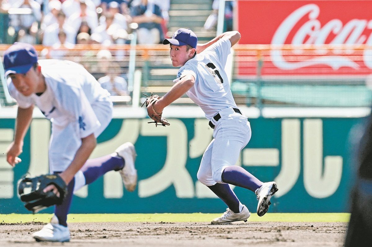 京都国際―関東第一2回表京都国際2死、高岸の遊ゴロを好捕し、一塁に送球する遊撃手市川=甲子園球場で