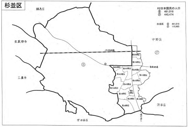 下高井戸一丁目、下高井戸二丁目、下高井戸三丁目、下高井戸四丁目、下高井戸五丁目、永福一丁目(二番から四十四番までに限る。)、永福二丁目、永福三丁目、永福四丁目、浜田山一丁目、浜田山二丁目、浜田山三丁目、浜田山四丁目、大宮二丁目(五番から十八番までに限る。)、高円寺南二丁目、高円寺南三丁目、高円寺南四丁目、高円寺北二丁目、高円寺北三丁目、高円寺北四丁目、阿佐谷南一丁目、阿佐谷南二丁目、阿佐谷南三丁目、阿佐谷北一丁目、阿佐谷北二丁目、阿佐谷北三丁目、阿佐谷北四丁目、阿佐谷北五丁目、阿佐谷北六丁目、天沼一丁目、天沼二丁目、天沼三丁目、本天沼一丁目、本天沼二丁目、本天沼三丁目、成田西一丁目、成田西二丁目、成田西三丁目、成田西四丁目、成田東一丁目、成田東二丁目、成田東三丁目、成田東四丁目、成田東五丁目、荻窪一丁目、荻窪二丁目、荻窪三丁目、荻窪四丁目、荻窪五丁目、南荻窪一丁目、南荻窪二丁目、南荻窪三丁目、南荻窪四丁目、上荻一丁目、上荻二丁目、上荻三丁目、上荻四丁目、西荻南一丁目、西荻南二丁目、西荻南三丁目、西荻南四丁目、西荻北一丁目、西荻北二丁目、西荻北三丁目、西荻北四丁目、西荻北五丁目、今川一丁目、今川二丁目、今川三丁目、今川四丁目、清水一丁目、清水二丁目、清水三丁目、桃井一丁目、桃井二丁目、桃井三丁目、桃井四丁目、井草一丁目、井草二丁目、井草三丁目、井草四丁目、井草五丁目、下井草一丁目、下井草二丁目、下井草三丁目、下井草四丁目、下井草五丁目、上井草一丁目、上井草二丁目、上井草三丁目、上井草四丁目、善福寺一丁目、善福寺二丁目、善福寺三丁目、善福寺四丁目、松庵一丁目、松庵二丁目、松庵三丁目、宮前一丁目、宮前二丁目、宮前三丁目、宮前四丁目、宮前五丁目、久我山一丁目、久我山二丁目、久我山三丁目、久我山四丁目、久我山五丁目、高井戸東一丁目、高井戸東二丁目、高井戸東三丁目、高井戸東四丁目、高井戸西一丁目、高井戸西二丁目、高井戸西三丁目、上高井戸一丁目、上高井戸二丁目、上高井戸三丁目