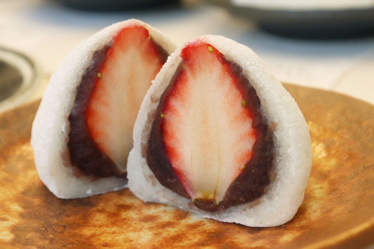 契約農家直送の摘みたてイチゴを使った「苺の生大福」(546円)など、人気の季節商品は開店して早々に売り切れることも少なくない。