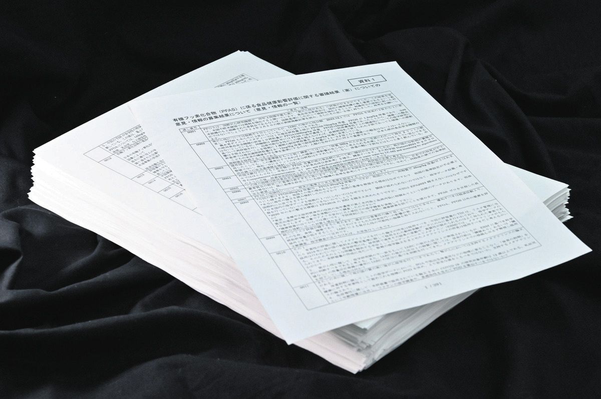 発がん性が疑われる有機フッ素化合物(PFAS)の健康影響を評価し、食品や飲料水の1日当たりの摂取許容量を議論してきた内閣府食品安全委員会は25日、PFASの一種であるPFOSとPFOAの2物質でそれぞれ、体重1キロ当たり20ナノグラムを指標とする「評価書」を正式決定した。約4000件届いたパブリックコメント(意見公募)は「緩すぎる」などの批判がほとんどだったが、食安委は反映しなかった。(松島京太)
