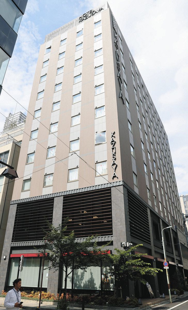 ホテルかずさやのエントランス=東京都中央区日本橋本町で