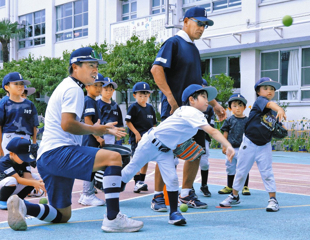 低学年中心の午前練習。「ナイスボール」。体験に訪れていた約10人の未就学児に投げ方を指導していた森糸法文監督(42)の声が響く。グラウンドの一角にあるワンボックスカーは、送迎などに使うチーム車両。荷物運搬用の軽トラックを含め、計4台を所有している。飲み物は持参してもらうが、補充用の飲料はチームが用意。会計ソフトやウェブ決済を導入し、保護者が練習に来なくても活動費などを支払える仕組みも整えている。
