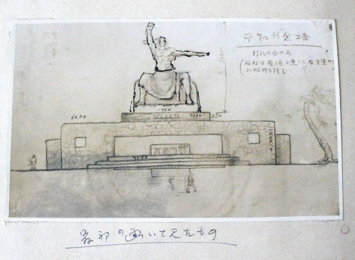 長崎のシンボル・平和祈念像の作者、北村西望(1884~1987年)の祈念像制作時の試行錯誤を物語る資料が、長く住んだ東京都北区の旧アトリエで見つかった。区文化振興財団が発表した。現在の座像とは違う立像とするスケッチなどが含まれ、専門家は制作の経緯を伝える貴重な内容と評価している。(鈴木里奈)
