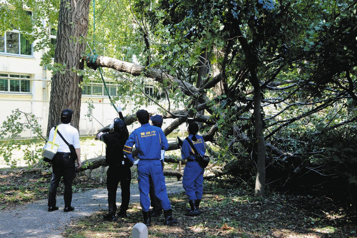 13日に現場を確認した日本樹木医会の小林明理事は「落下した枝には実が多くついており、全体で数十キロの重量になっていた可能性がある。上の方にあった枝が重さに耐えられなくなって折れ、下の枝を次々に巻き込んでいったのではないか」と話した。