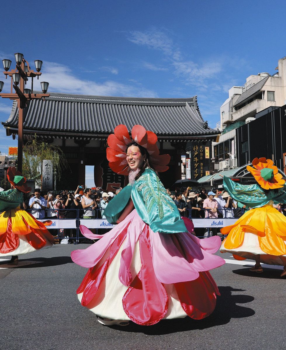 コンテストが5年ぶりに「完全復活」し、東京都台東区浅草の浅草寺周辺で15日に開かれた「第39回浅草サンバカーニバル」。昨年は「縮小版」だったが、今年のコースは以前と同じ800メートルに戻り、「アレゴリア」と呼ばれる山車も登場した。都内を拠点に活動する大学生ら若い世代でつくるチームも、熱い思いを込めた演技で浅草の街を盛り上げた。(鈴木里奈)