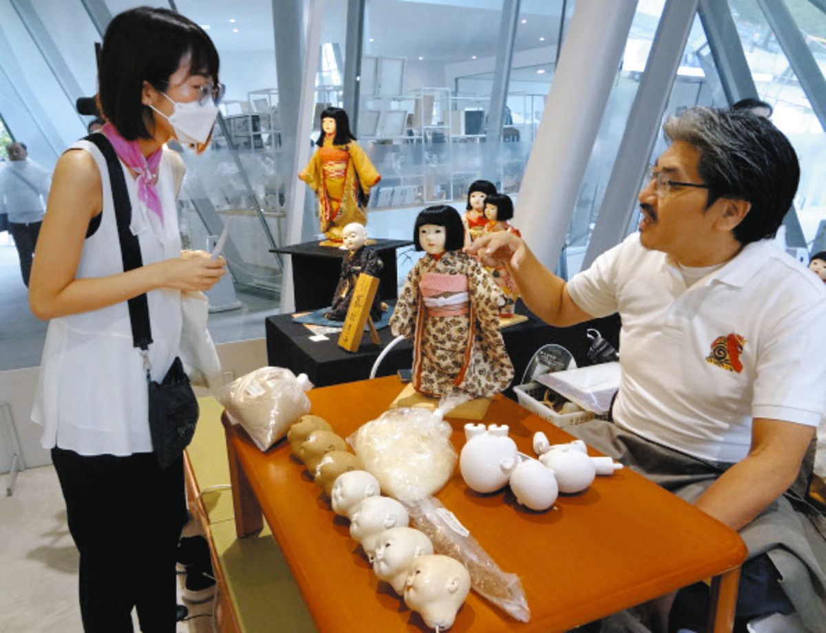 市松人形のコーナーでは「人形工房紫雲」代表の藤村紫雲さん(59)が人形づくりについて説明。来場者は「職人さんは話し上手な人が多く学べる」と感心した様子だった。実行委員長で「二葉桐工房」代表取締役の田中英二さん(59)は「伝統工芸を若い世代に広く伝えていきたい」と意気込みを語った。