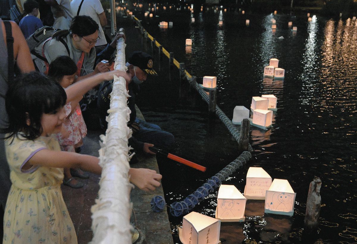 灯籠流しは、1999年から両区関係者の実行委員会が終戦の日に開いてきた。2020年から昨年まではコロナ禍や台風の影響で献花式のみだった。