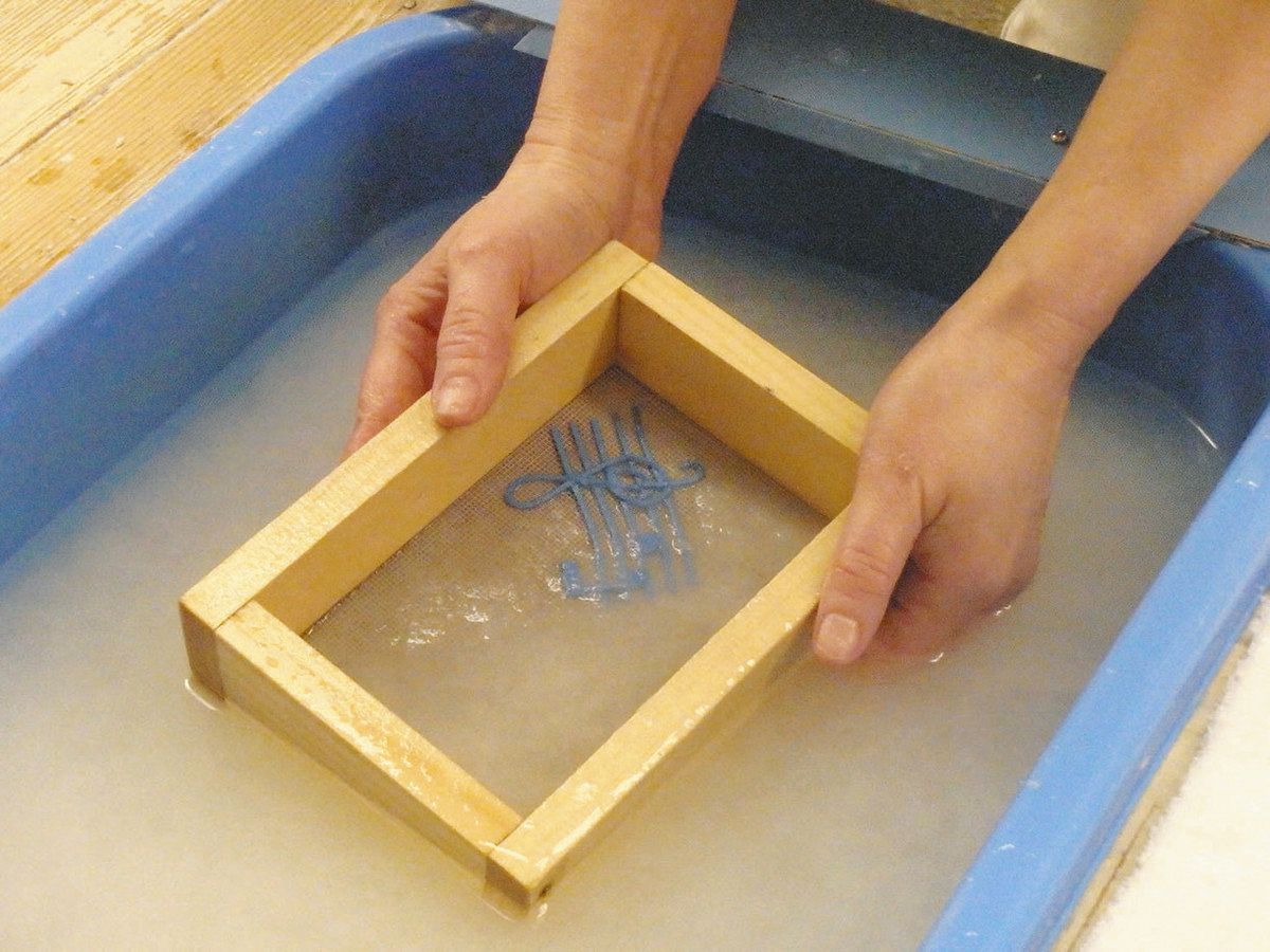 毎週土、日曜には「紙すき教室」が開かれ、牛乳パックを再生した原料から手すきで、はがき・しおりを作る。13時開始、整理券配布(12時40分~13時40分)。無料、ただし入館料(400円、小中高生200円)は必要。