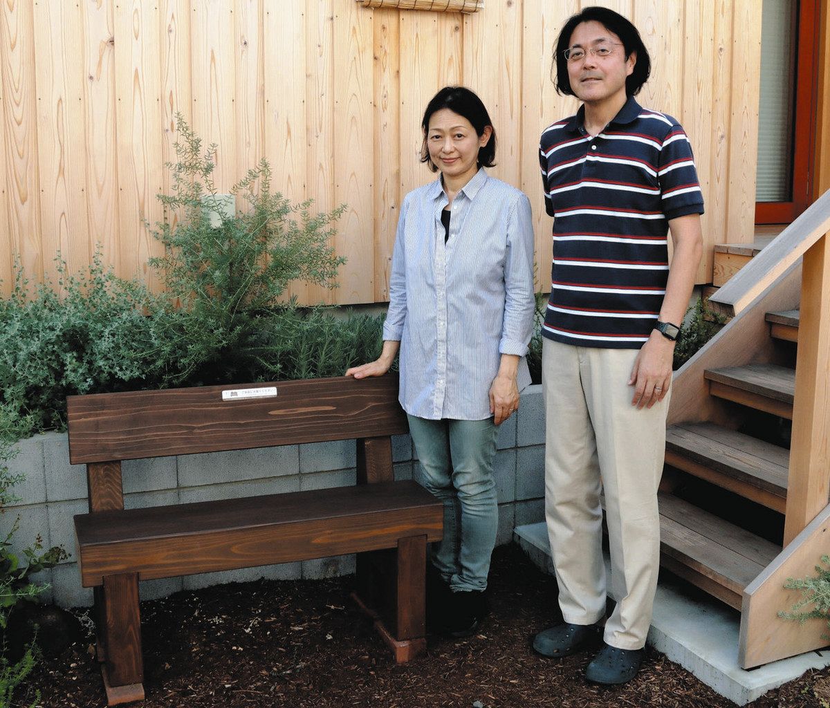 一つ目のベンチは8月上旬、同区宮前4の住宅街に、通りに面して置かれた。横幅1メートル、奥行き0・4メートルで、素材は国産の杉。背もたれに「ご自由にお座りください」と書かれている。