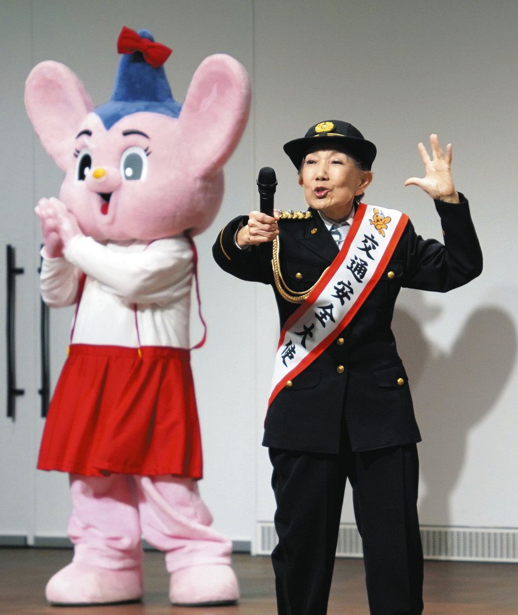 水前寺さんは署員とのトークショーで、自身が運転免許証を自主返納したことを紹介。「仕事も仕事だし、何かあったらいけないと思った」と理由を語った。代表曲「三百六十五歩のマーチ」を披露する一幕もあり、集まった区民ら約300人を盛り上げた。