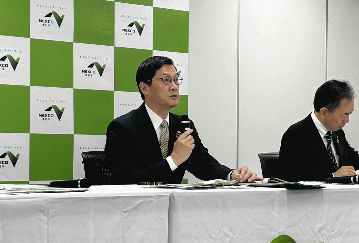 記者会見する東日本高速の由木文彦社長=30日、東京都千代田区で(梅野光春撮影)