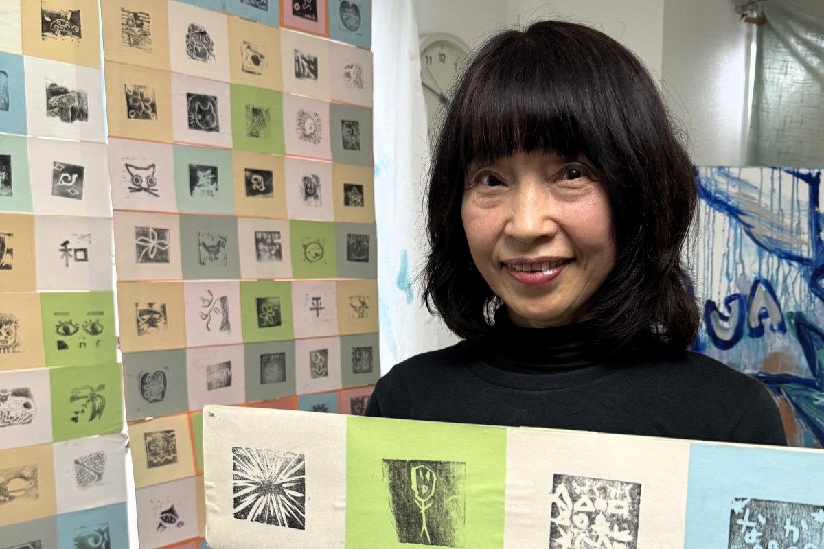 小さな版画だが、図柄を決めて彫り上げるには30分ほどかかる。静かに作品と向き合う参加者を眺めるたび、「平和を祈る時間と通じるものがある」と感じている。参加者同士の交流が生まれ、平和を願う輪が広がることもある。